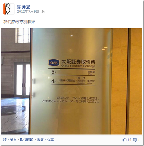 至於報導中出現的「取引所」,讓我想起大阪證交所: